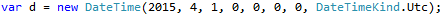 Let us try to understand date in server side in the world of C#. I have created a date using the below line. It is 1st April 2015 and tagging it as local date. When I say local date I mean the local date of the computer where this code is executing, that is the application server’s date. Obviously, the application server and browser can be located in two different time zones.